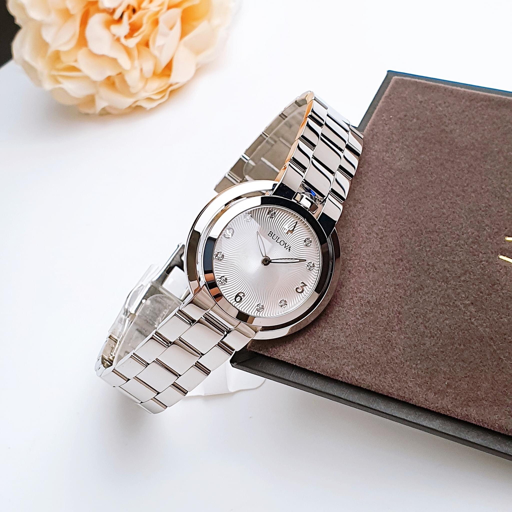 - Kính tinh thể saphire cong quyến rũ, màu silver nhẹ nhàng & gold sang trọng