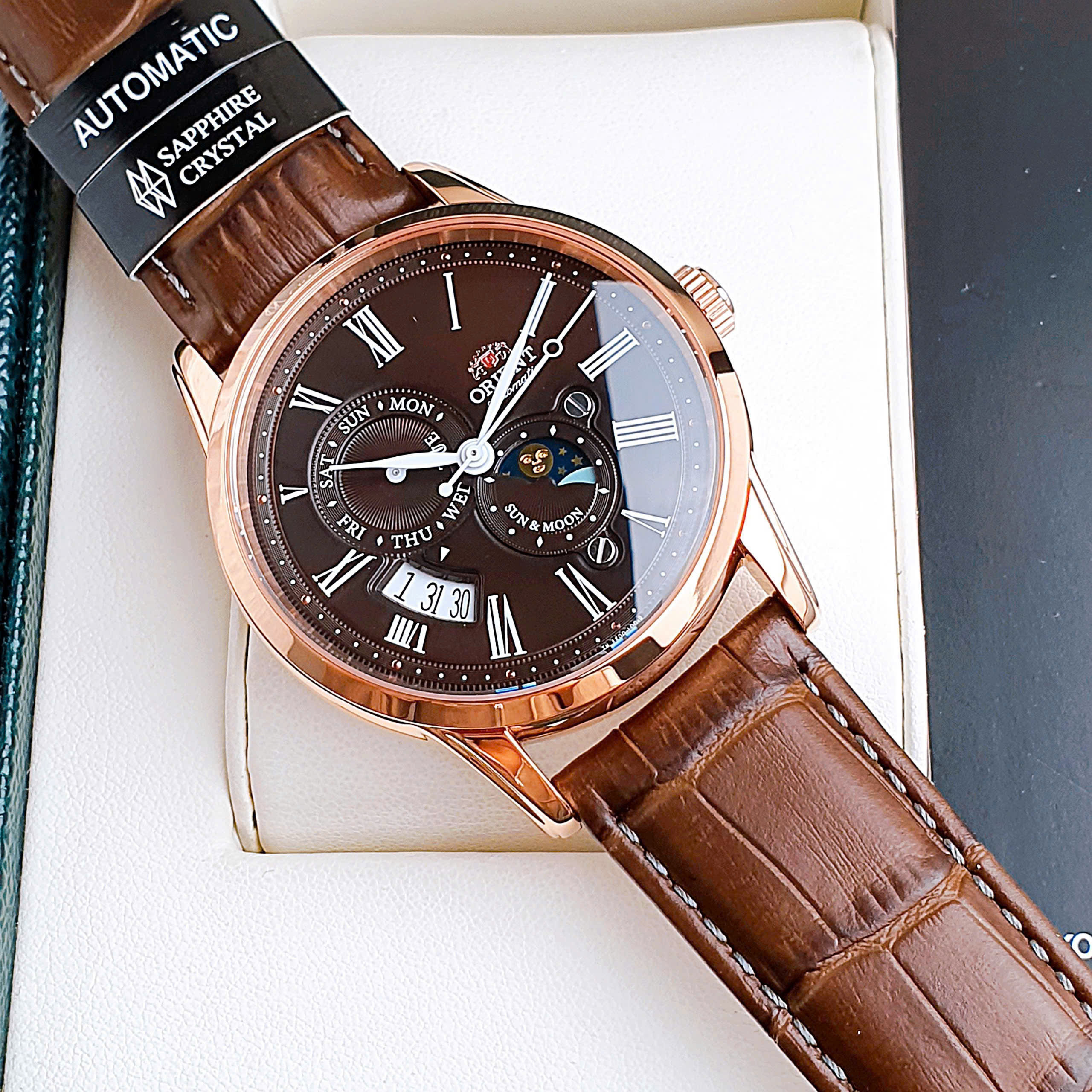 Như một ly 𝑪𝒂𝒇𝒆 ấm nóng, là phiên bản đẹp nhất dòng Sun&moon gen 3 với mặt số và dây da màu nâu chocolate