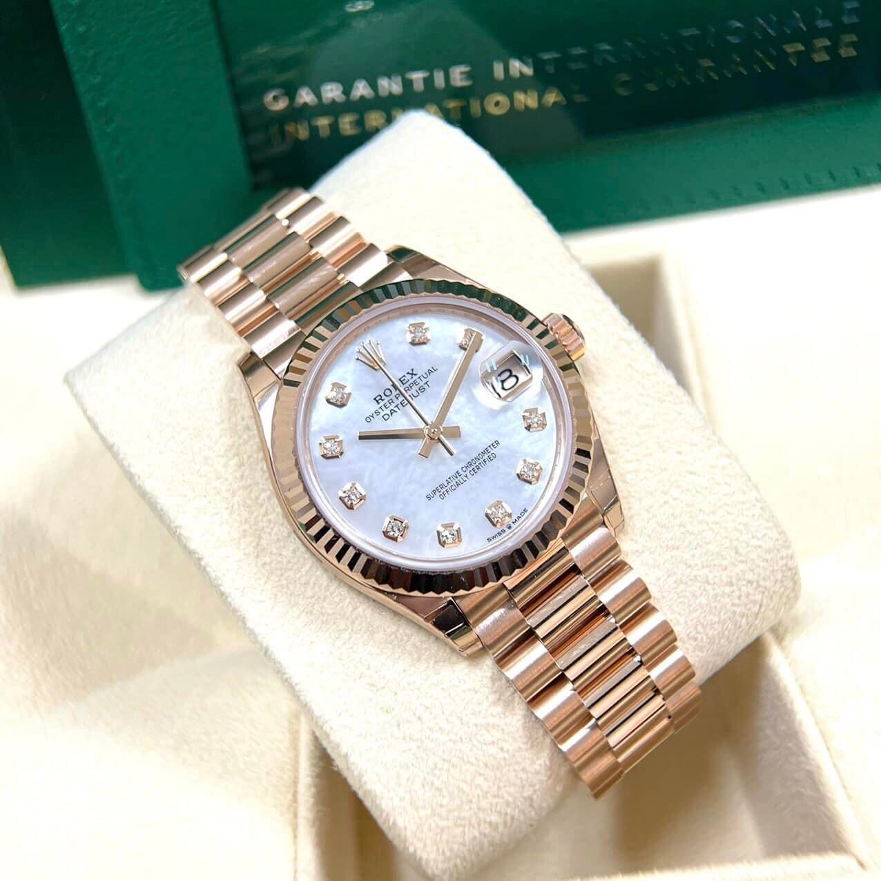 - Dây: Vàng hồng 18k, khóa bấm. đồng hồ chính hãng hải phòng