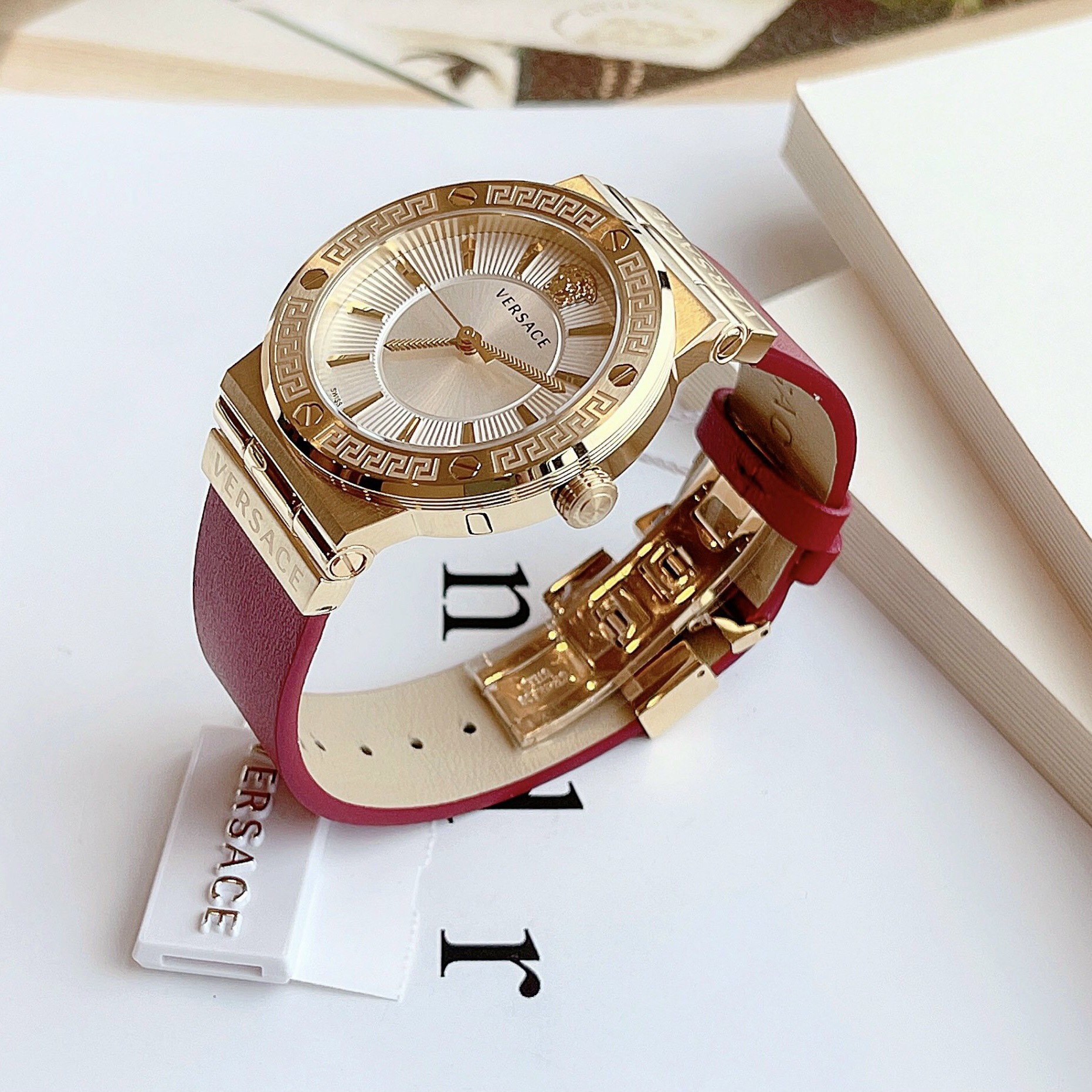 - Dây bằng da bê màu đỏ đậm, vỏ gold tạo nên một phong cách riêng quyến rũ rất đậm chất thương hiệu