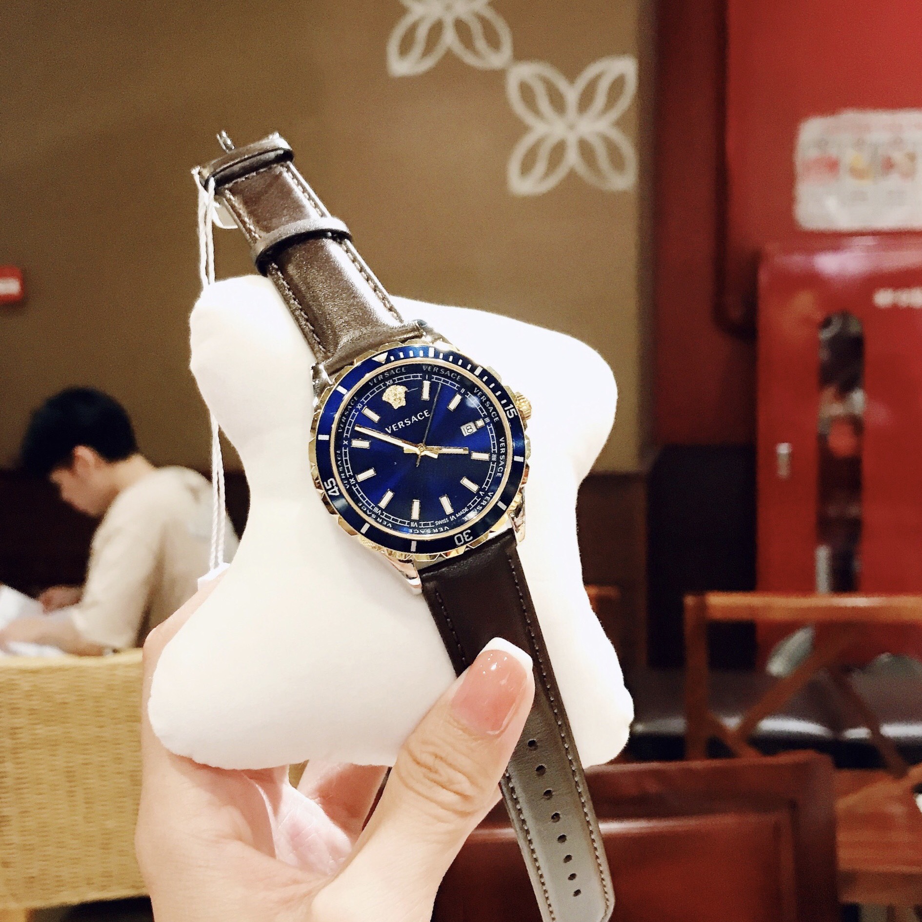 - Mặt xanh dây da nâu ấn tượng, mạnh mẽ và cá tính với 3KIM : giờ, phút, giây